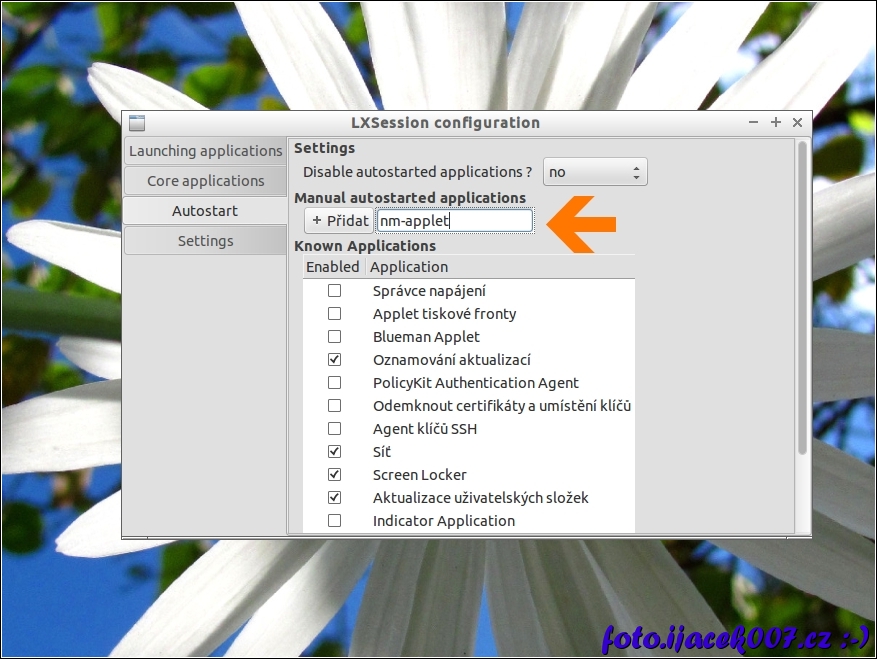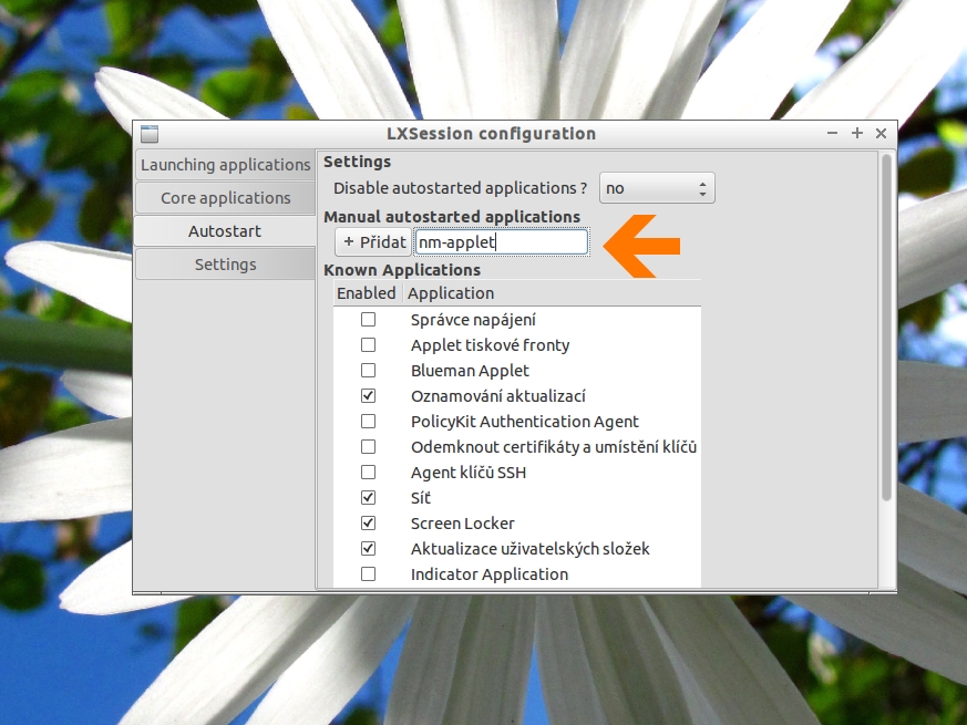 Lubuntu Default applications for LXSession přidání nm-applet