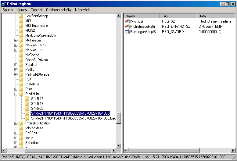 při chybě uživatelského profilu