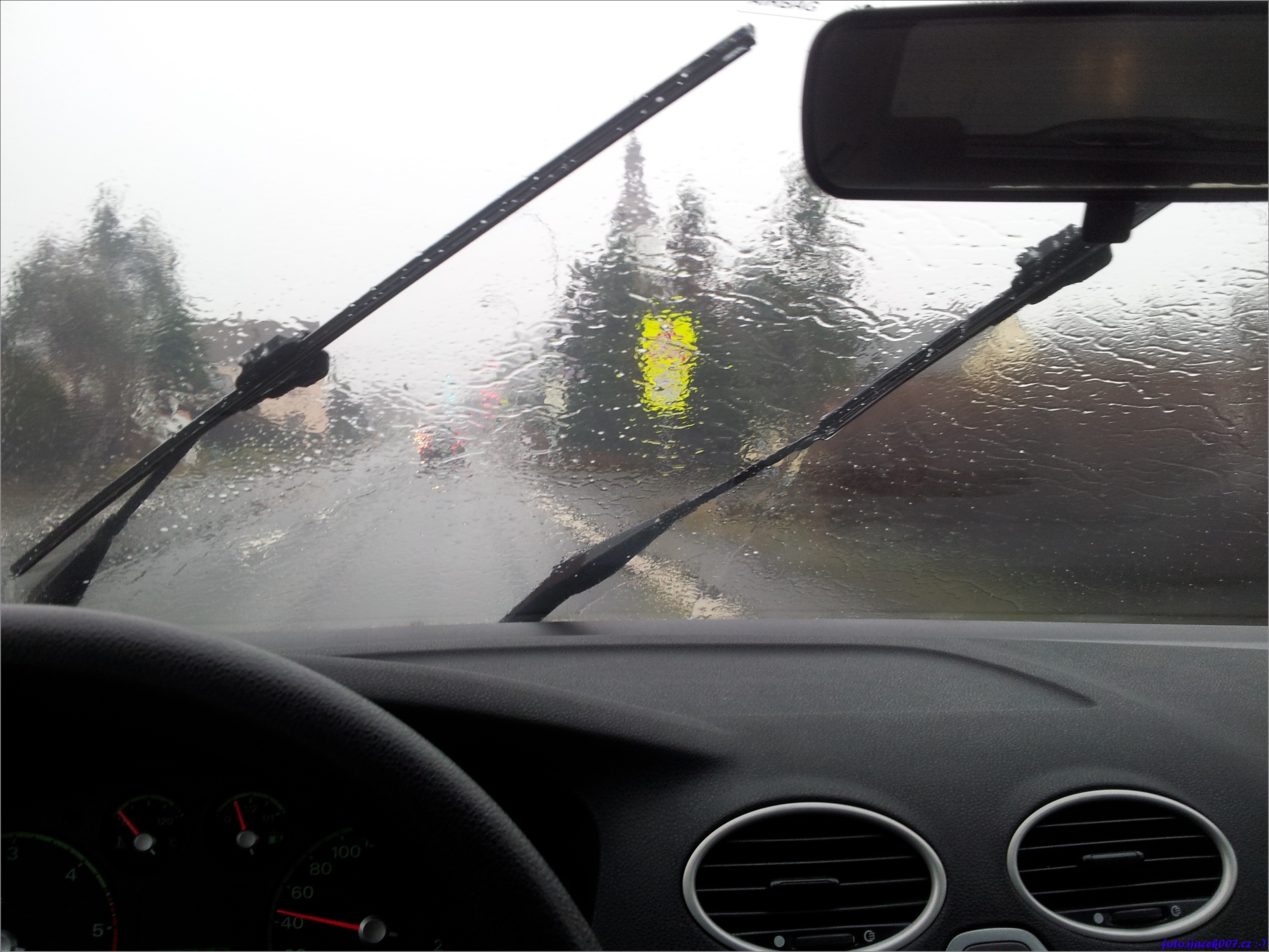 pohled na cestu za deště bez stěračů