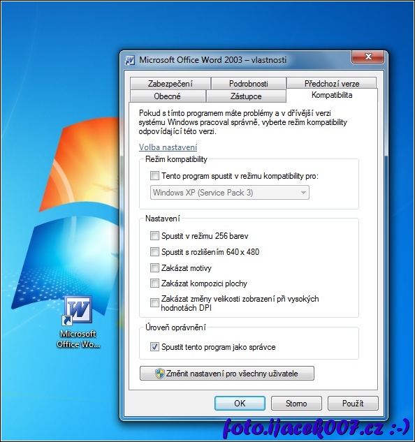 nastavení spouštění programu jako správce