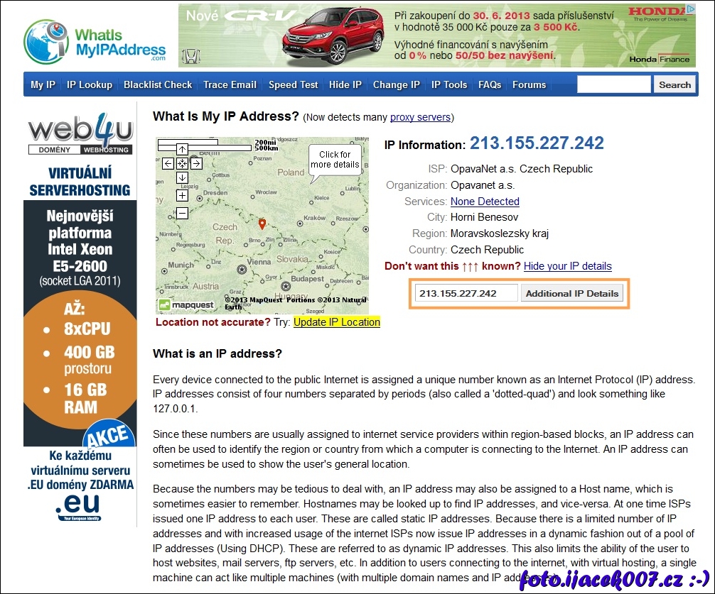 webová stránka na ověření ip adresy pokocí které přistupujete k internetu