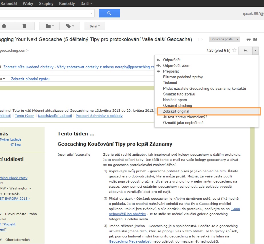 zobrazeni zdrojového kodu emailu gmail.com
