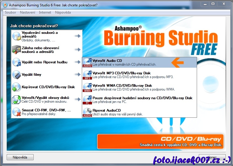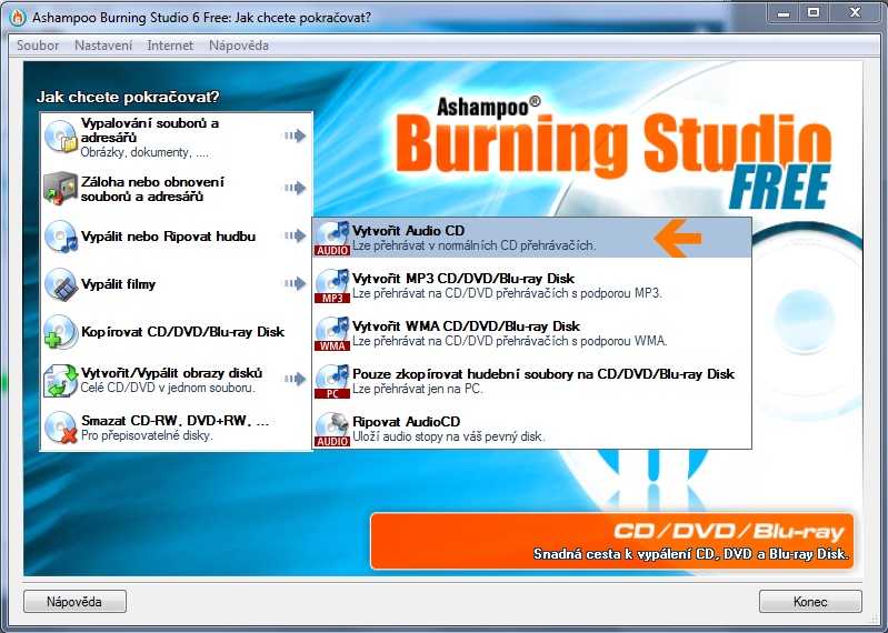 volba pro vytvožení audio CD