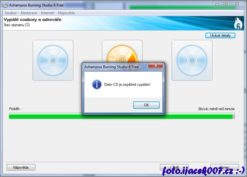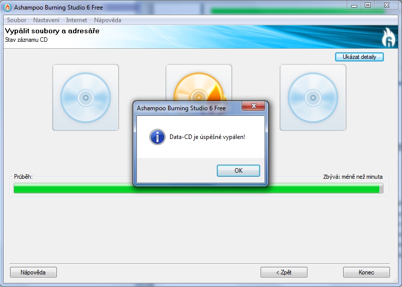 Dialog úspěšného vypálení CD / DVD