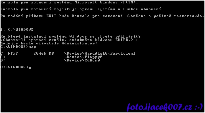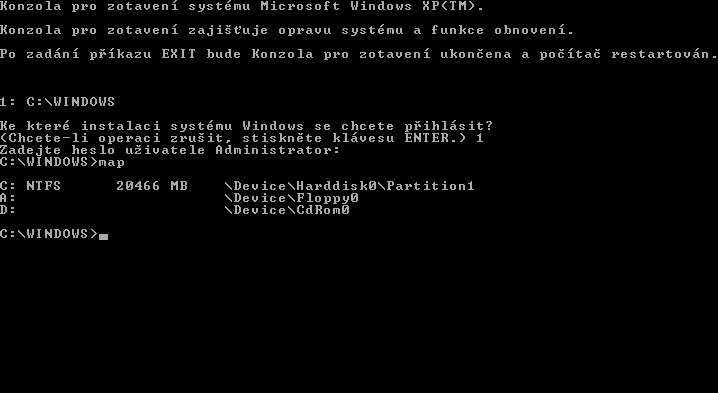 instalator windows XP recovery konzole příkaz map