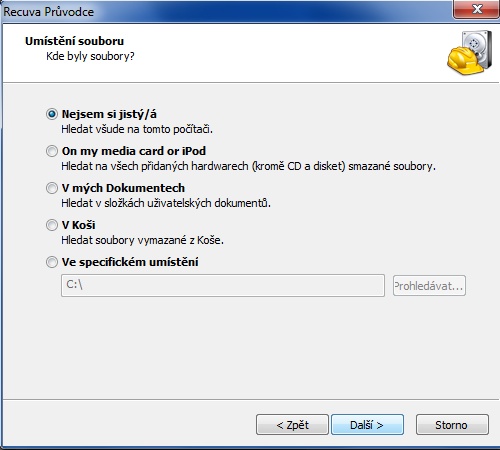 recuva pruvodce vyber umisteni