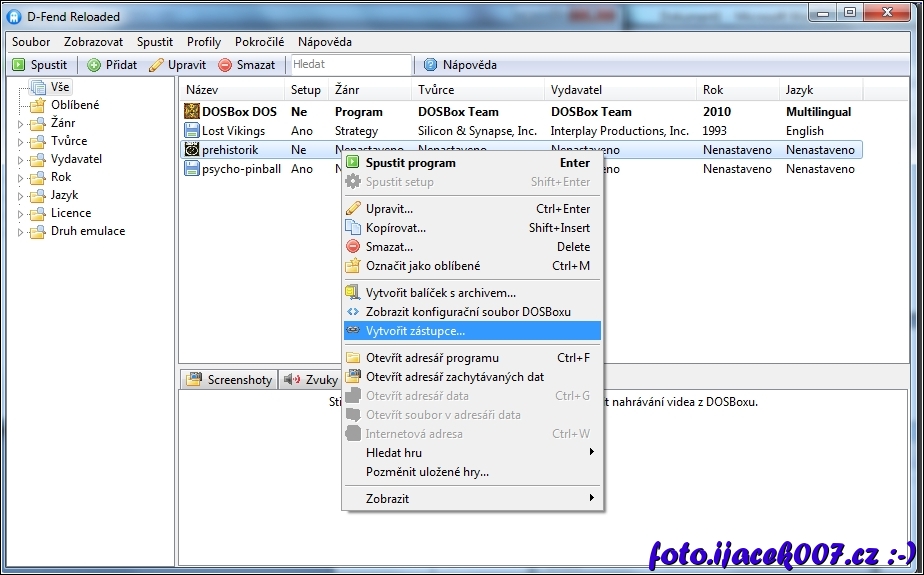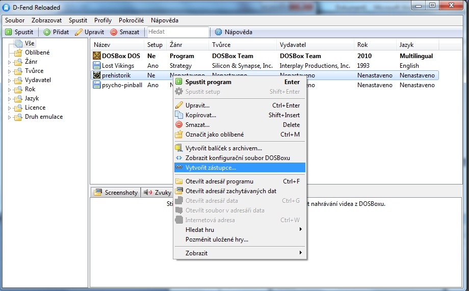 vytvoření zástupce na dos aplikaci spouštěnou programem d-fend