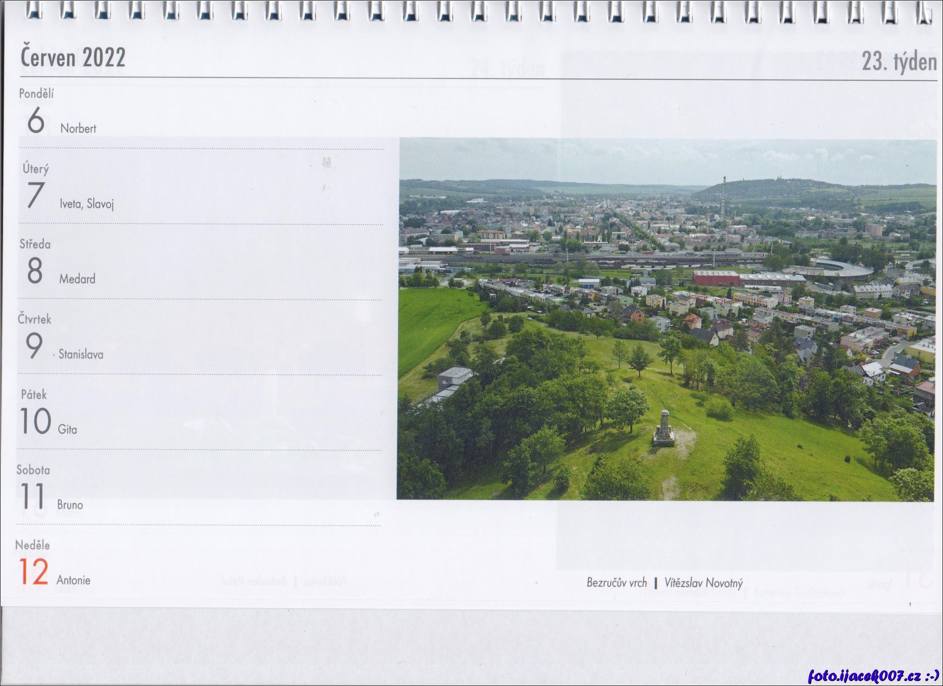 Stránka z krnovského kalendáře která obsahuje naší fotografii.