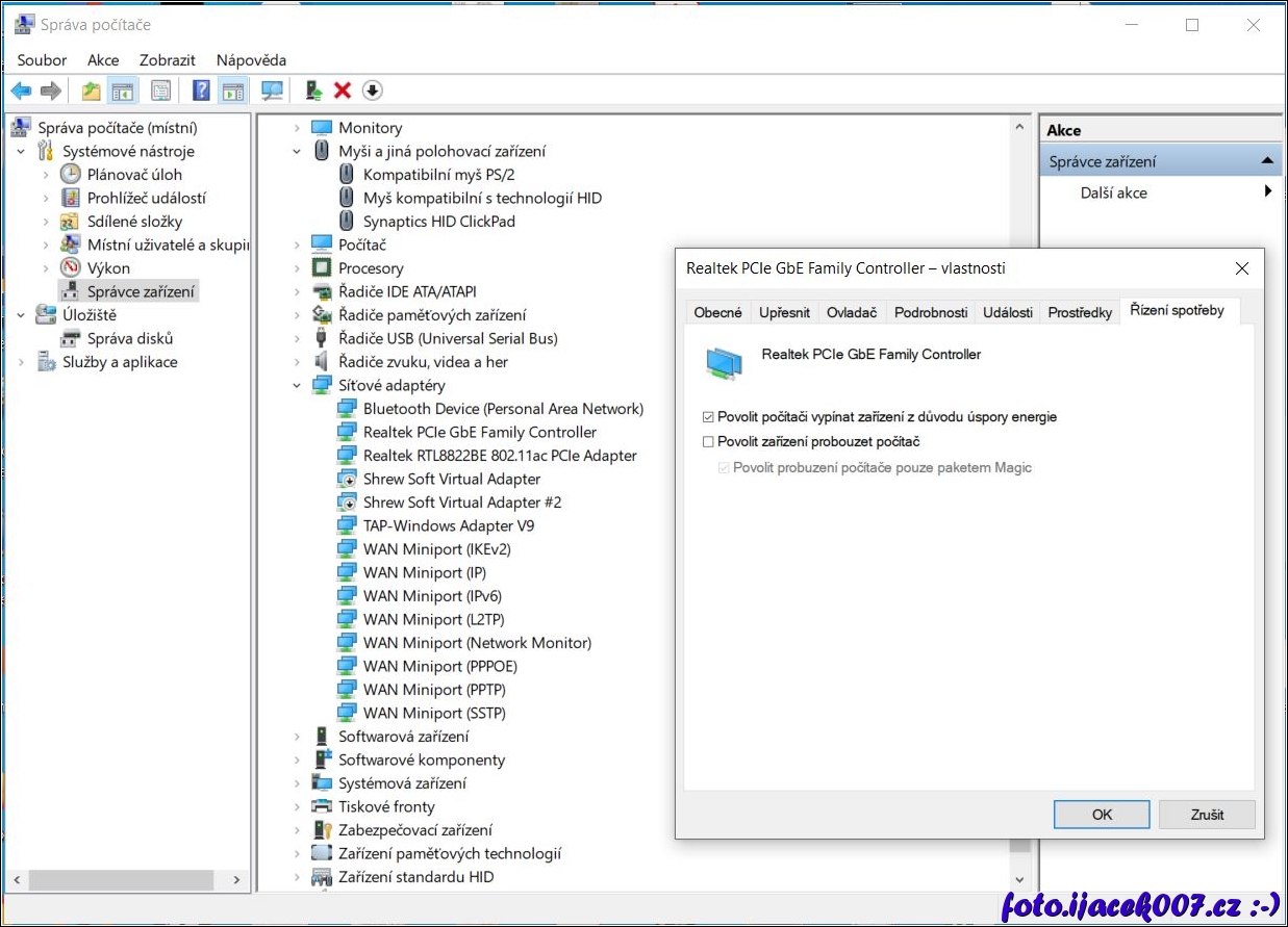 Správa počítače vlastnosti zařízení