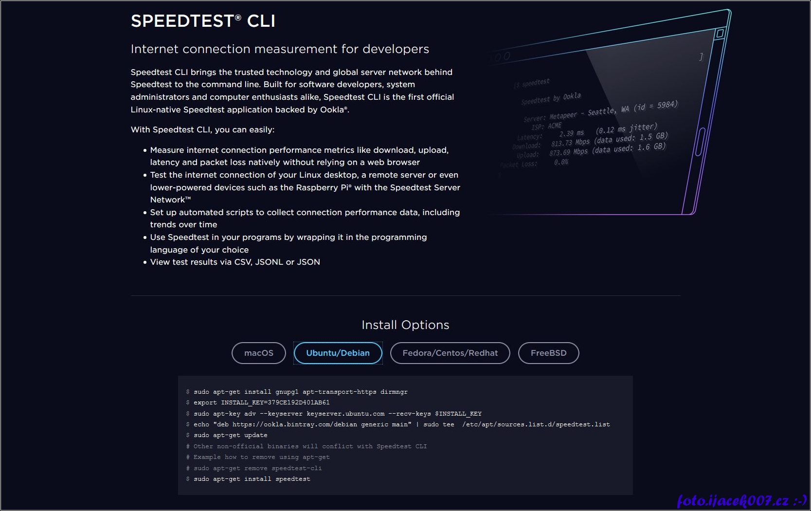 Wedová stránka speed test cli