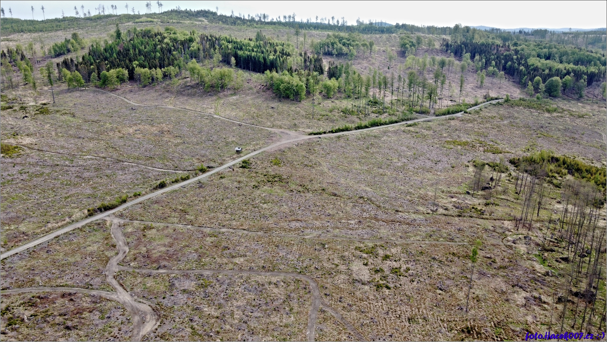 Pohled na místo kde ještě téměř nedávno byl les.