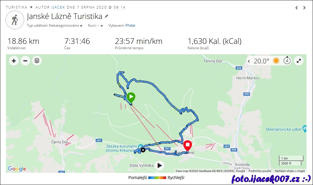 Pohled na počet km i záznam výletu.