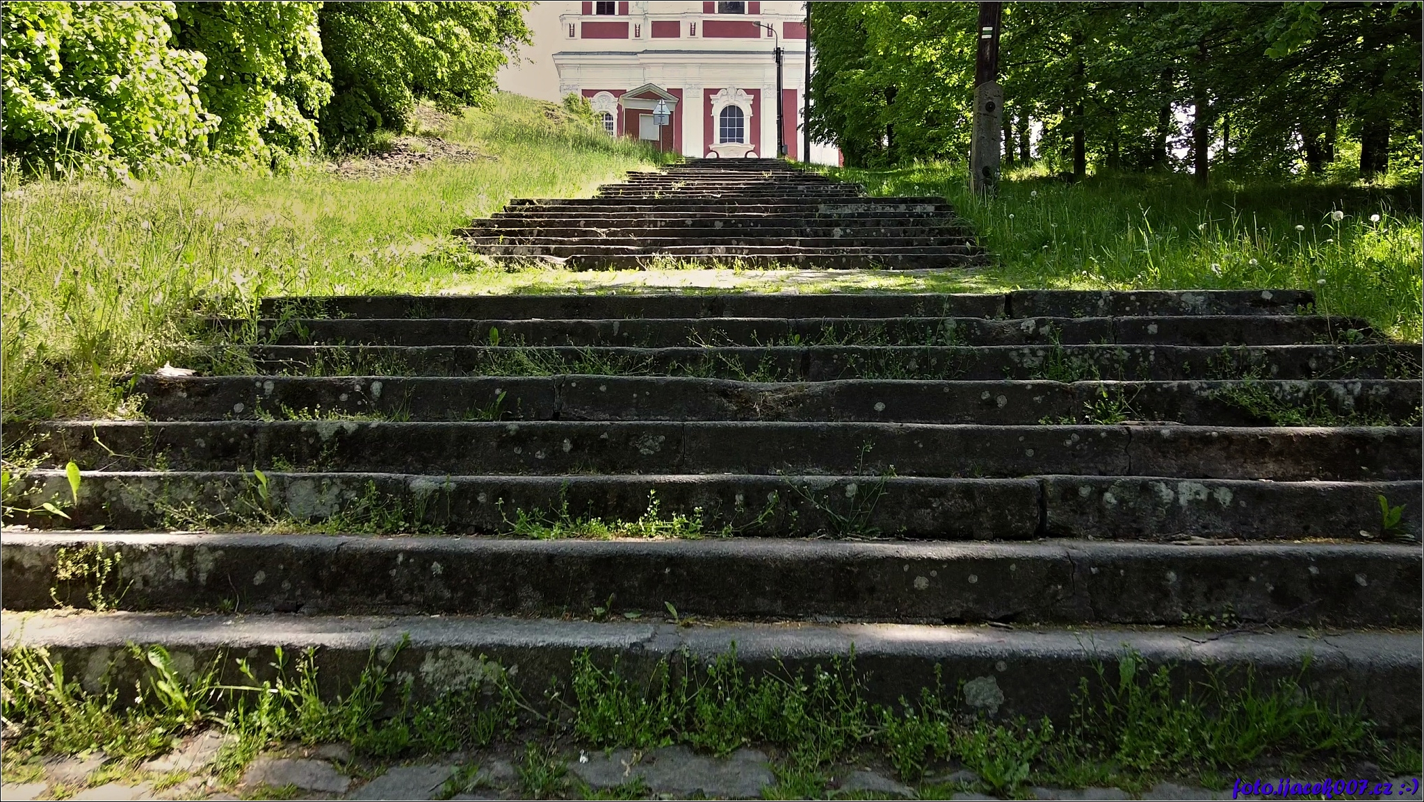 222 schodů vedoucích ke kostelu.