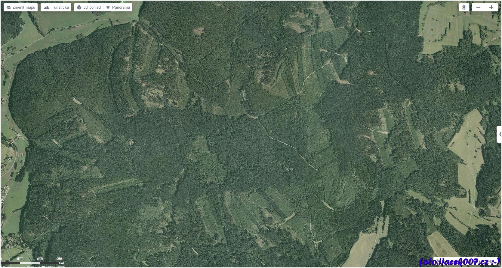 pohled na les okolo Kamené boudy nad Karlovicemi