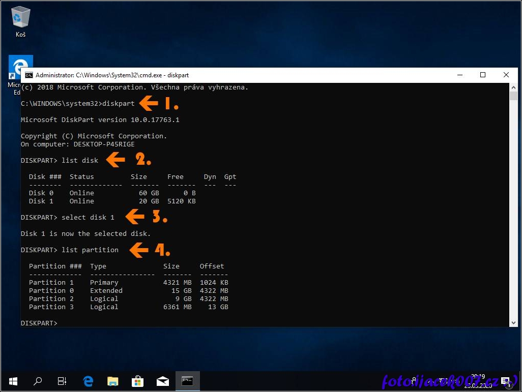 příkazová řádka a použití aplikace diskpart