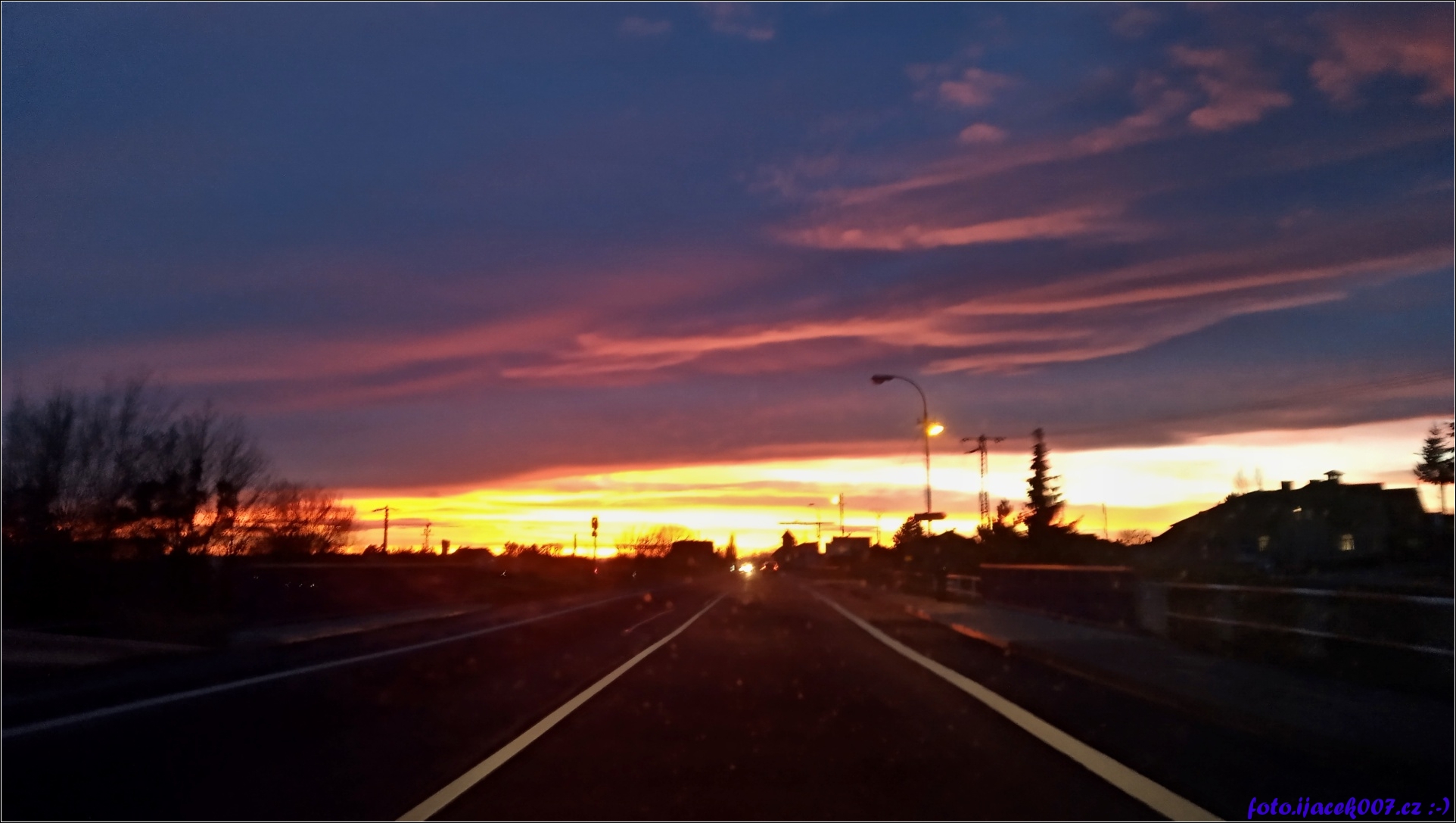Cesta do práce s krásným východem slunce.