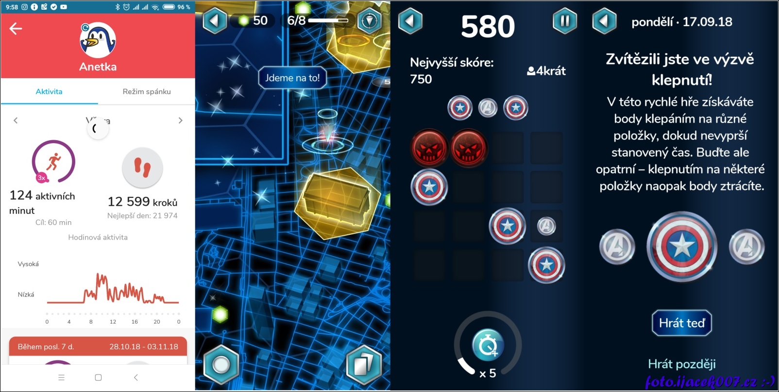 pohled na obrazovky aplikace k náramku