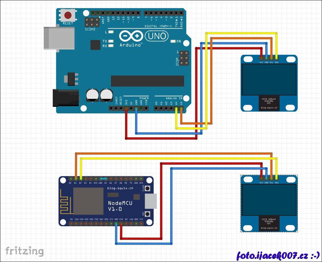 schréma zapojení I2C lcd