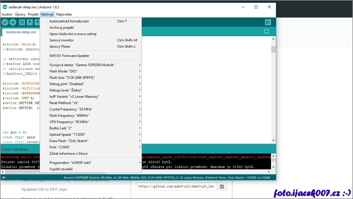 nastaveni desky a komunikace s arduino prostředím