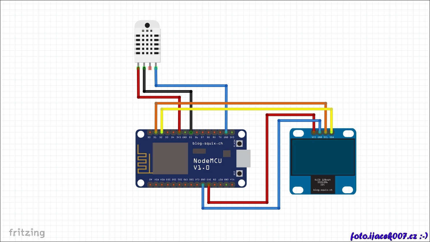 Pohled na zapojení LCD a DHT22