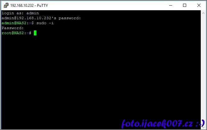 přihlášení k ssh synology a povíšení práv na uživatele ROOT