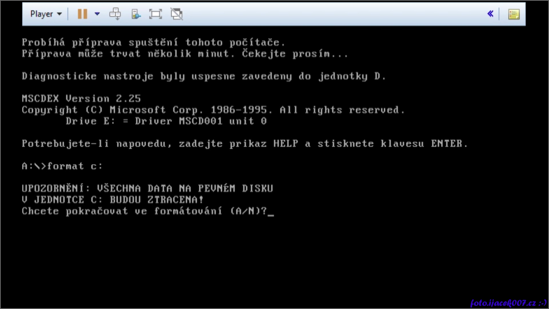 pohled na prostředí dos a příkaz na smazaní pevného disku Formát c: