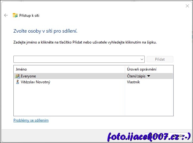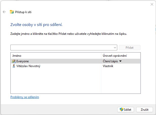 Dialog nastavení sdílení Windows 11