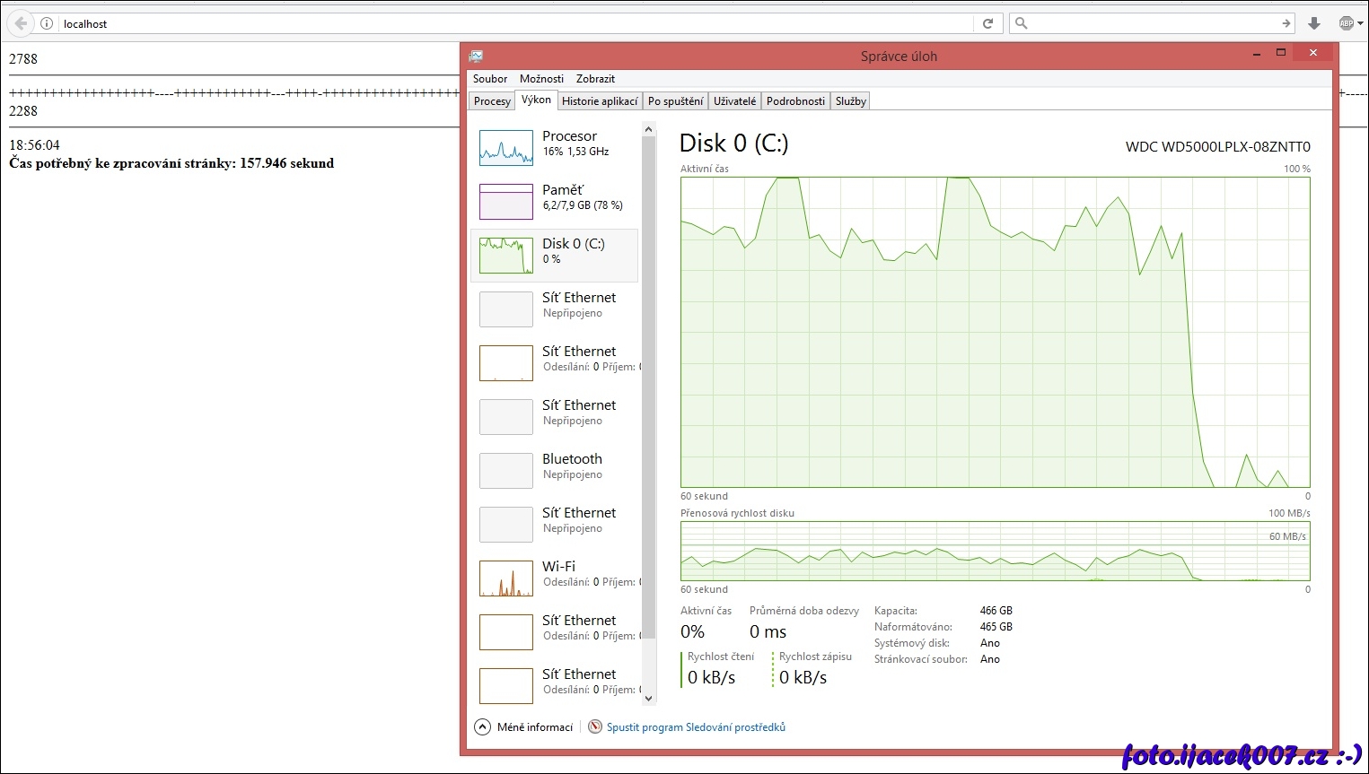 pohled na vytížení disku při importu dat do databáze