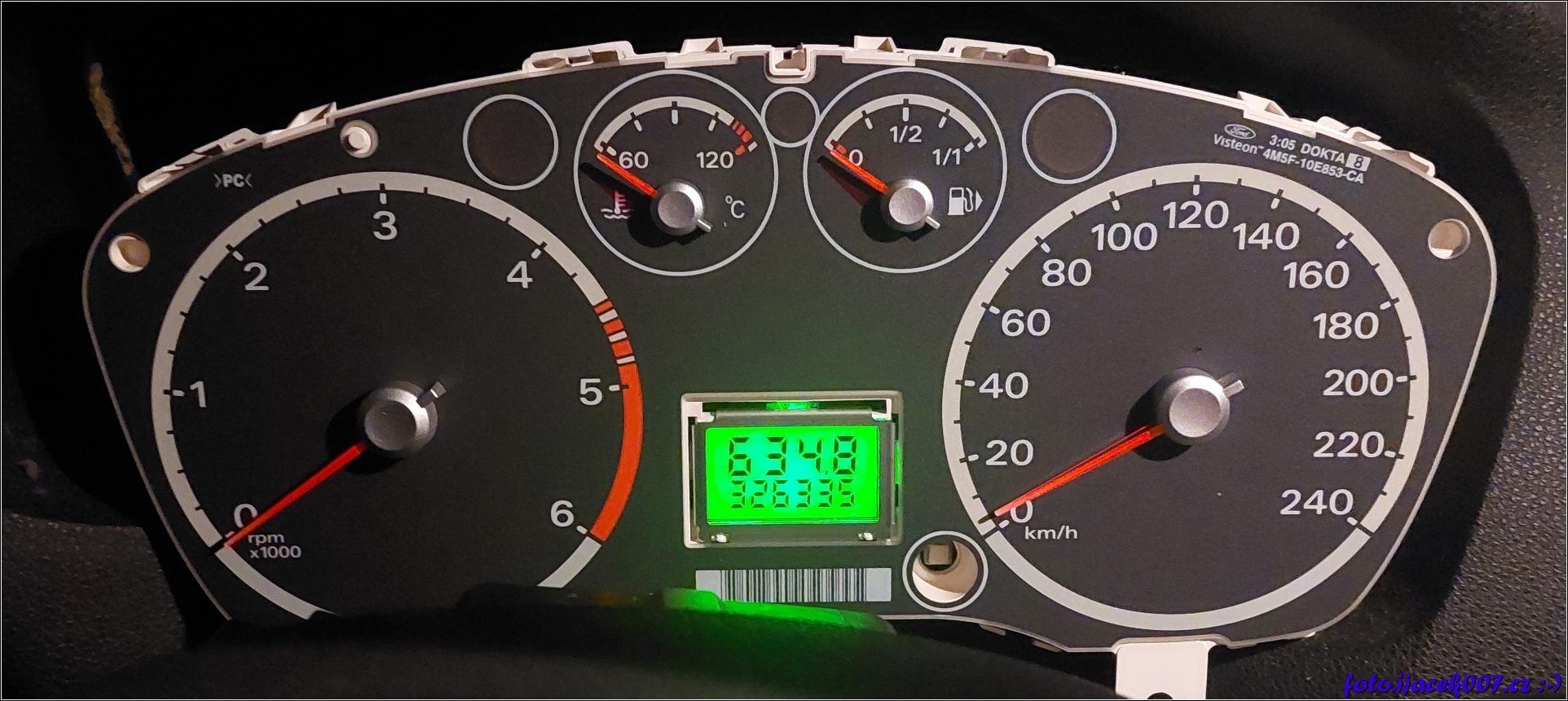 Testovací zapojení přístrojové desky po opravě.