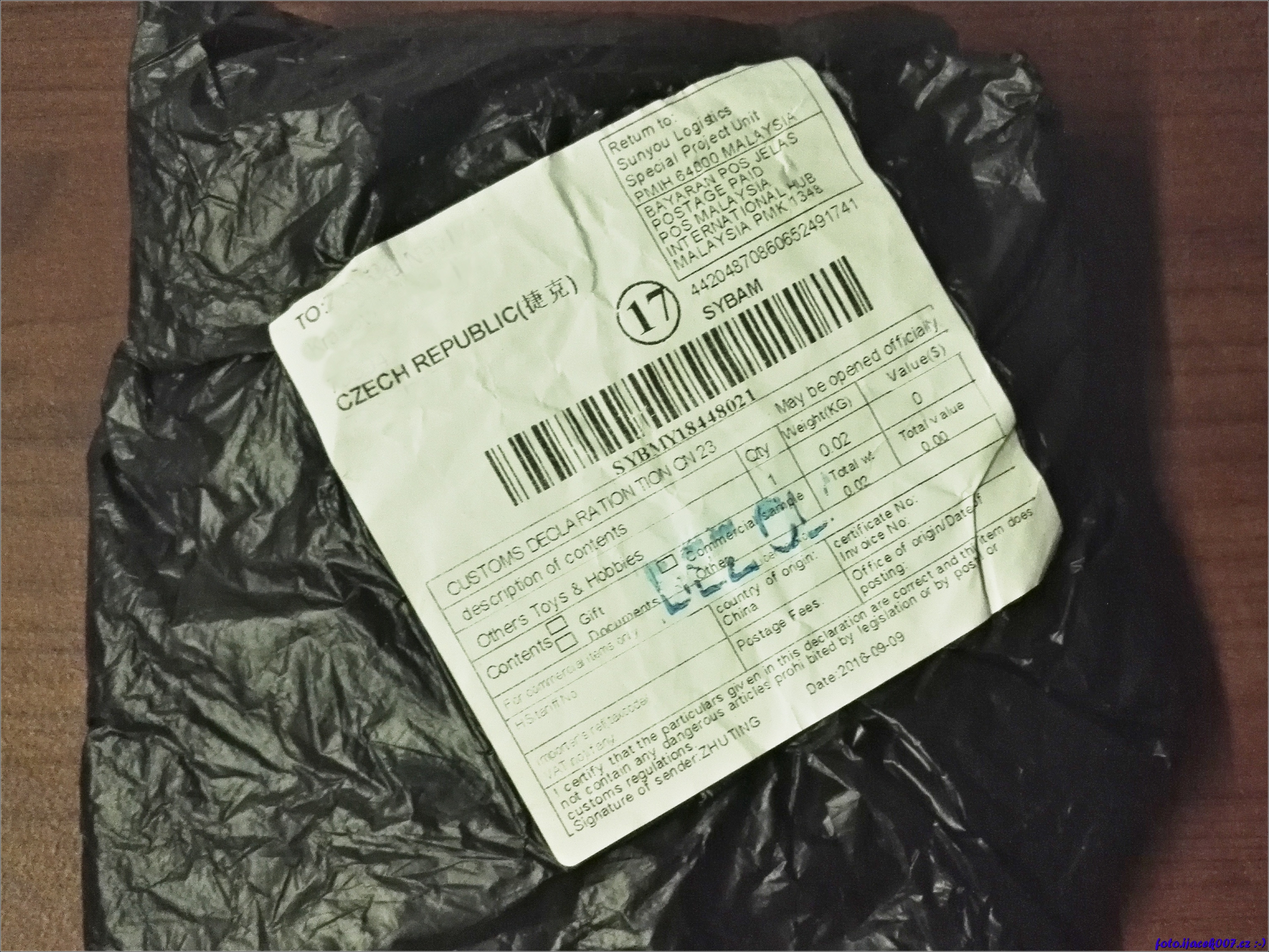 jeden z mnoha nízkorozpočtových zásilek z číny