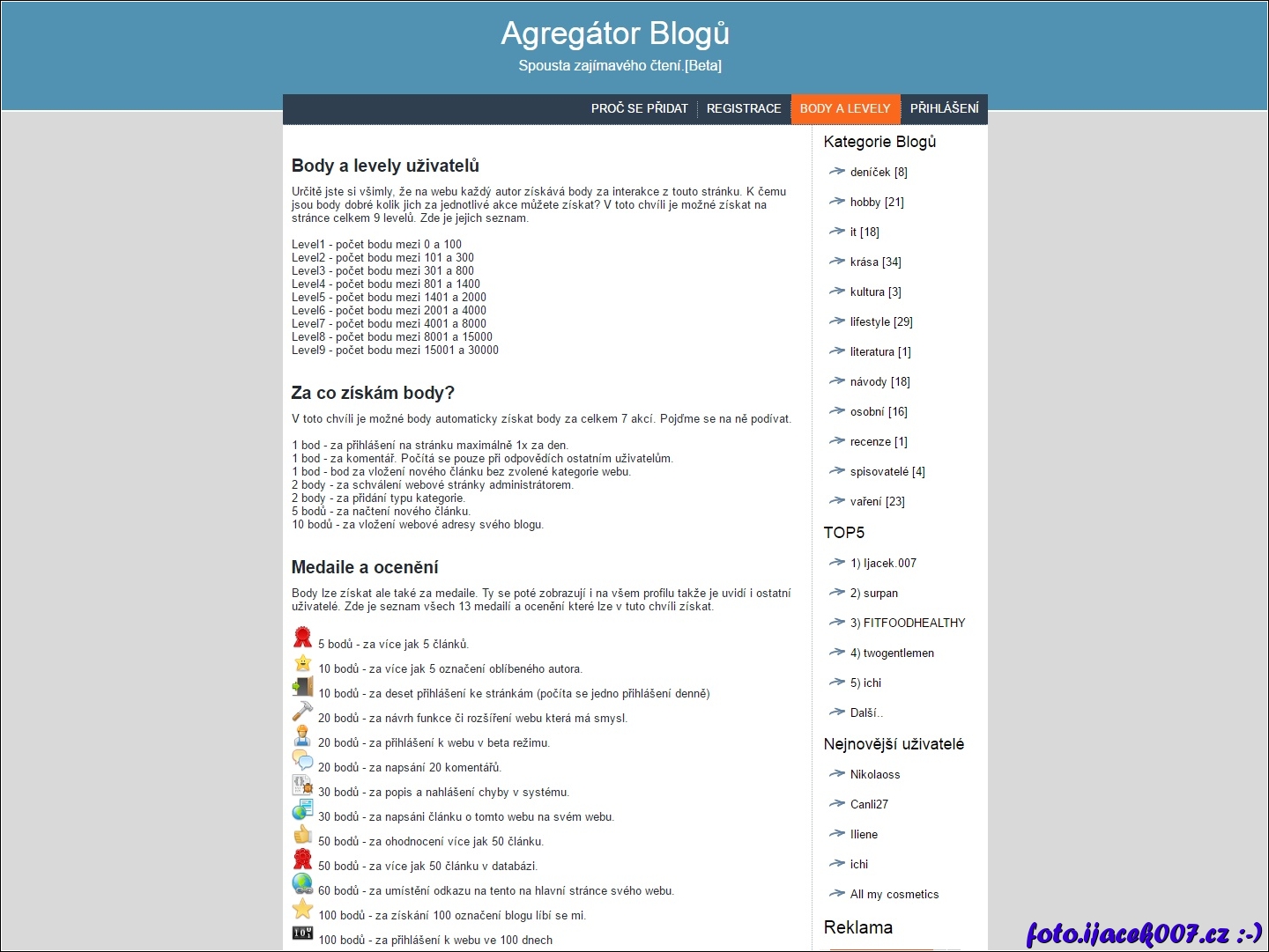 seznam bodu levelu a medailí