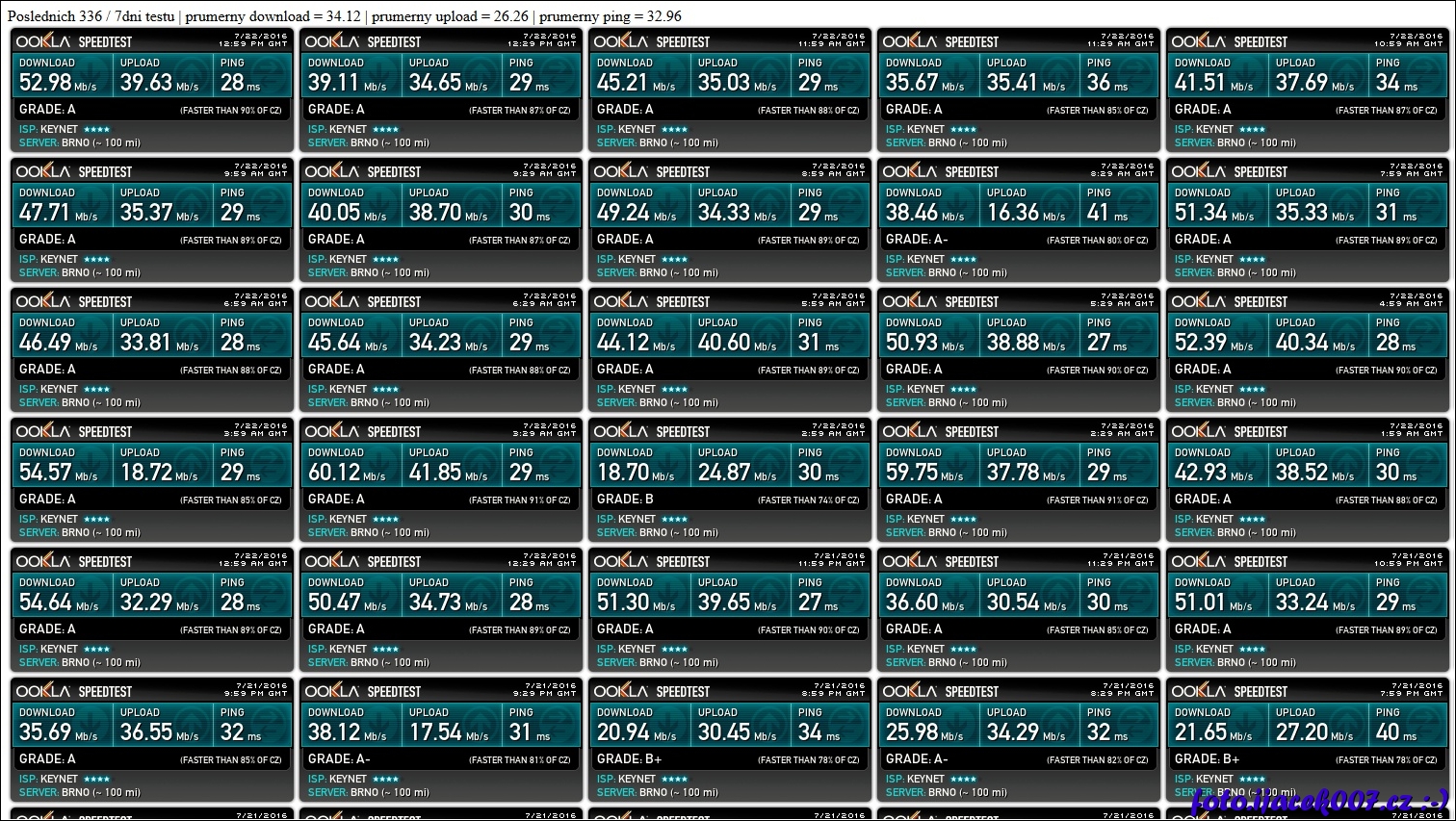 výsledek automatického testu rychlosti