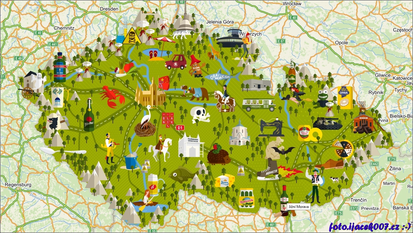 mapa české republiky plná místních dominant