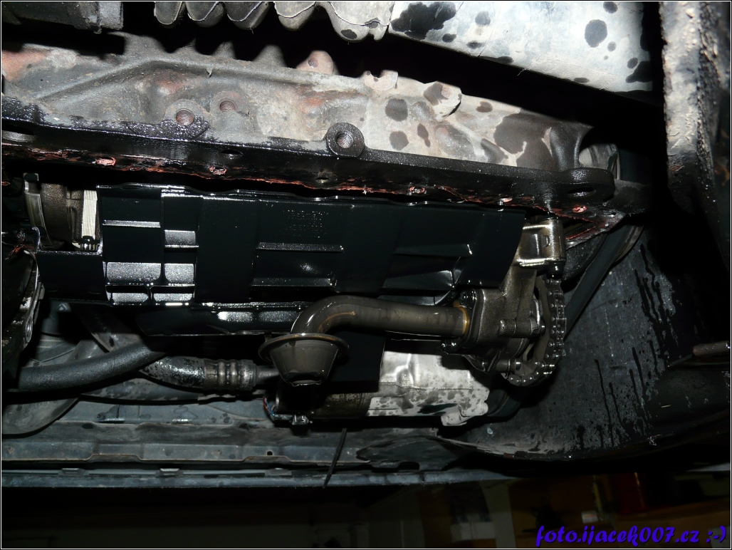 pohled na spodní část motoru bez olejové vany