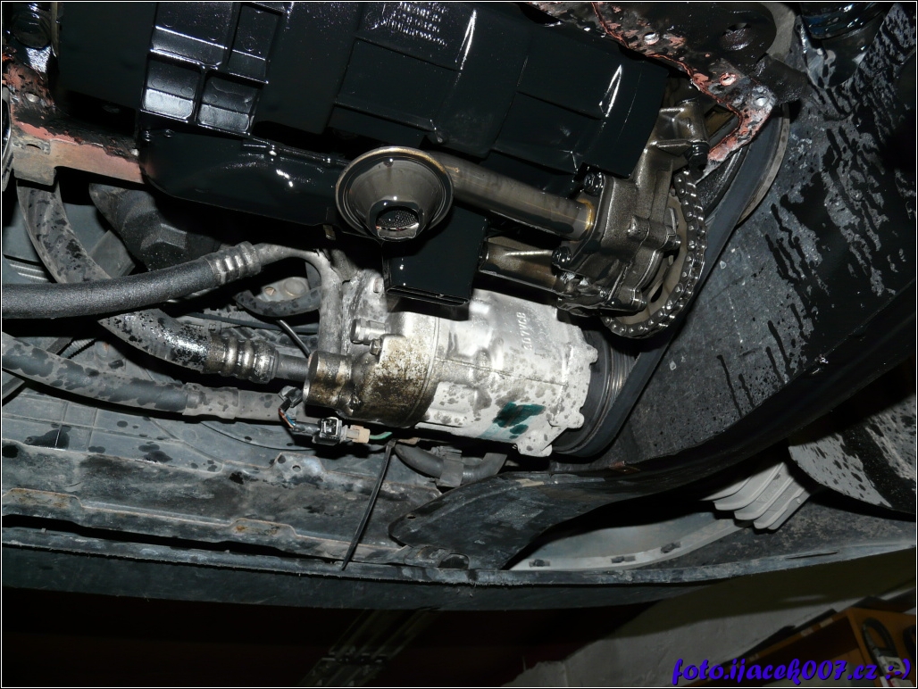 pohled na sání oleje ze spodní části olejové vany