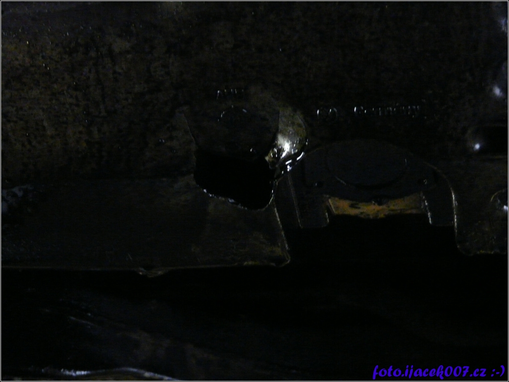 detail na díru v olejové vaně ze spod auta