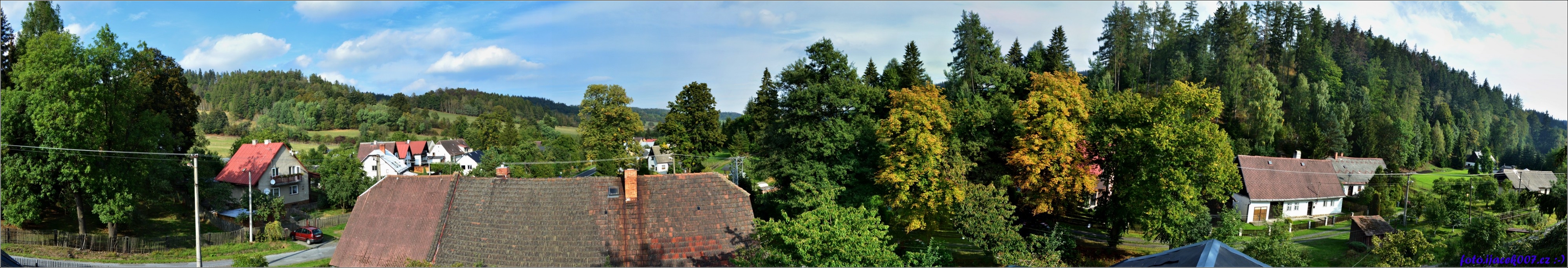 panoramatický pohled na obec krasov ze střechy jednoho z domu