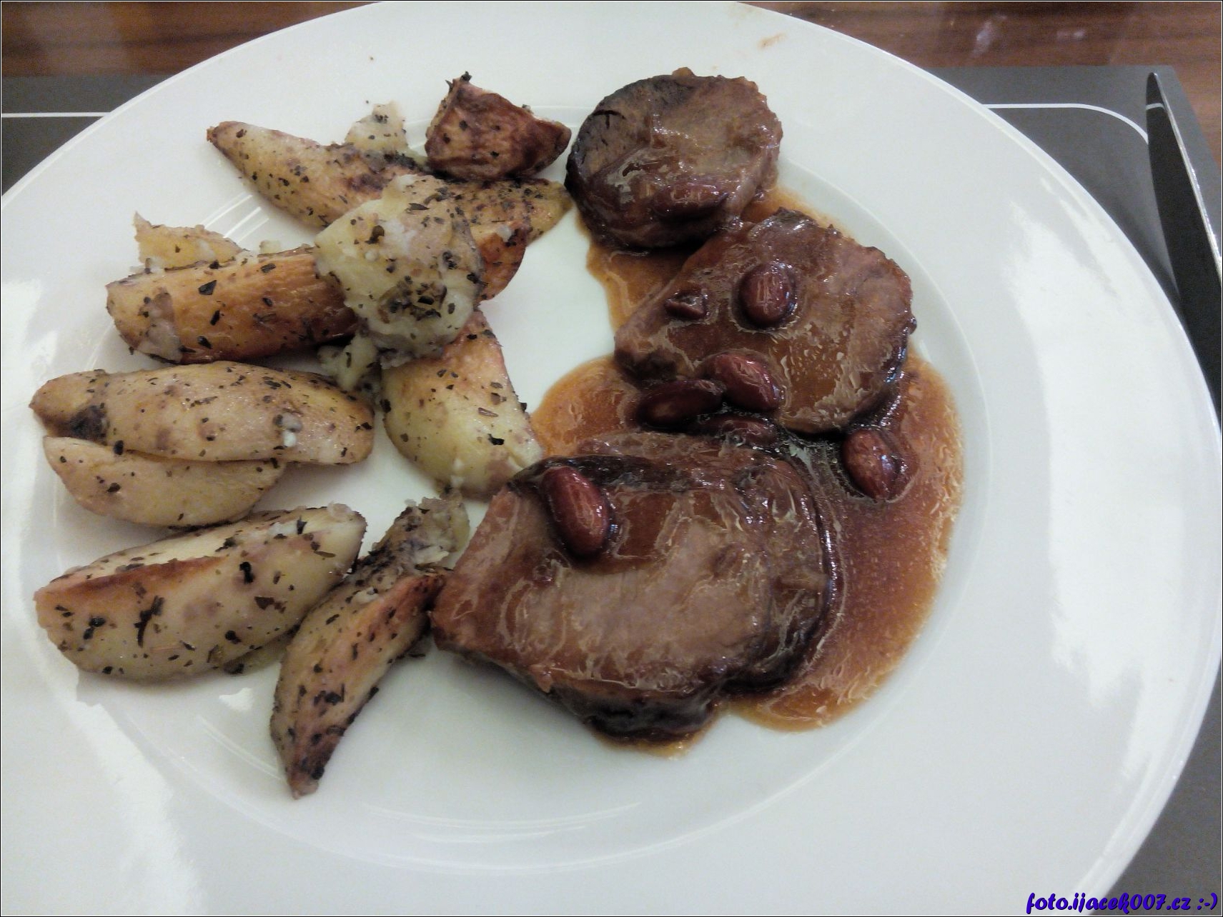 maso s grilovanými bramborami