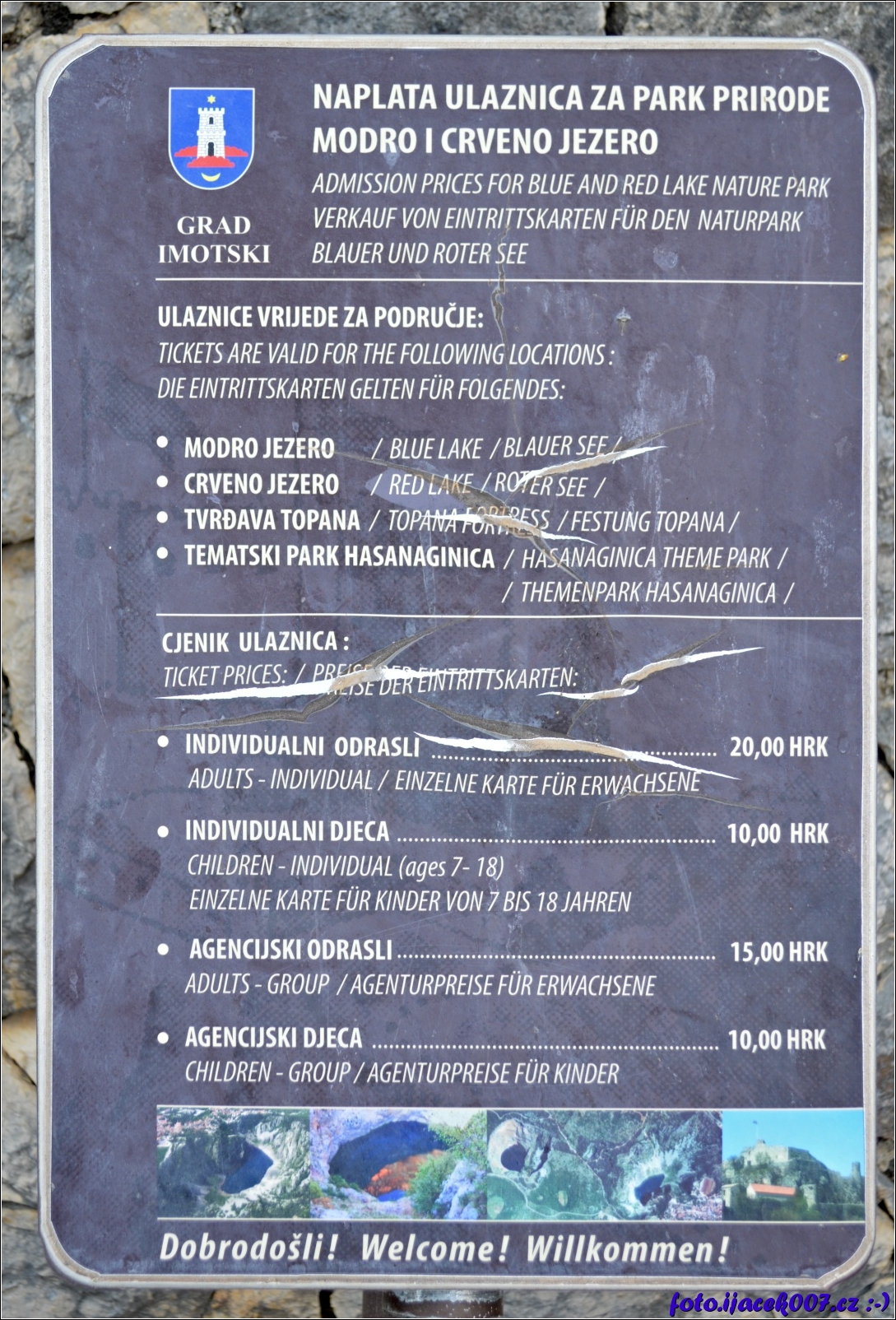 K modrému jezeru a zřícenině hradu nad ním se platí vstupné zde je ceník.