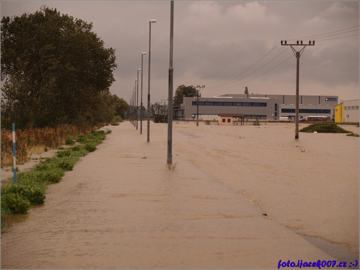 pohled na zatopenou průmyslovou zónu v Krnově