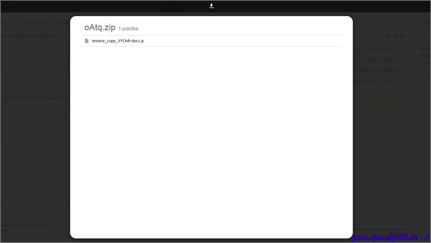 zákeřný javascrypt v příloze emailu