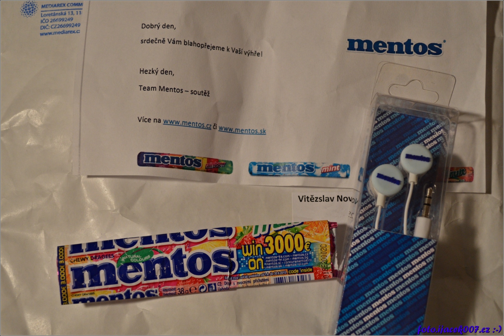 Vyhrané sluchátka v soutěži mentos.