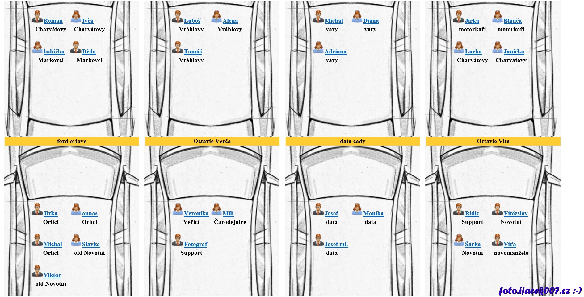 system svatebních hostu a aut