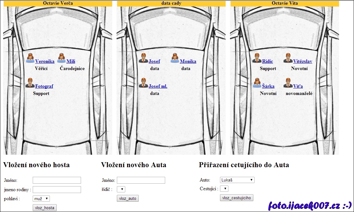 pohled na editační schopnosti programu vkládaní hostu a aut