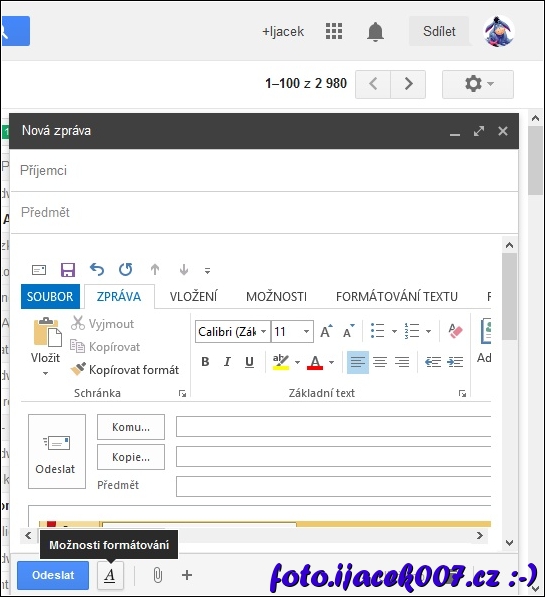vložení obrázku do google mailu