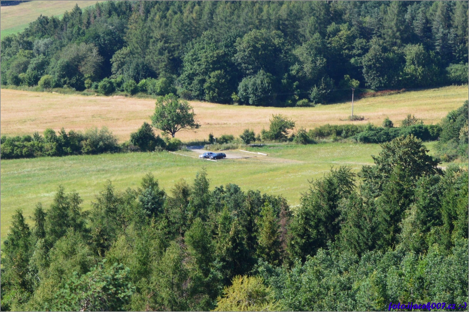 Výhled na parkoviště z rozhledny nad městem Albrechtice