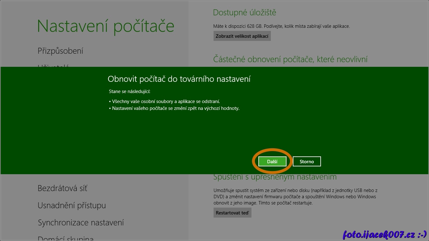 windows 8 obnoveni tovarniho nastaveni
