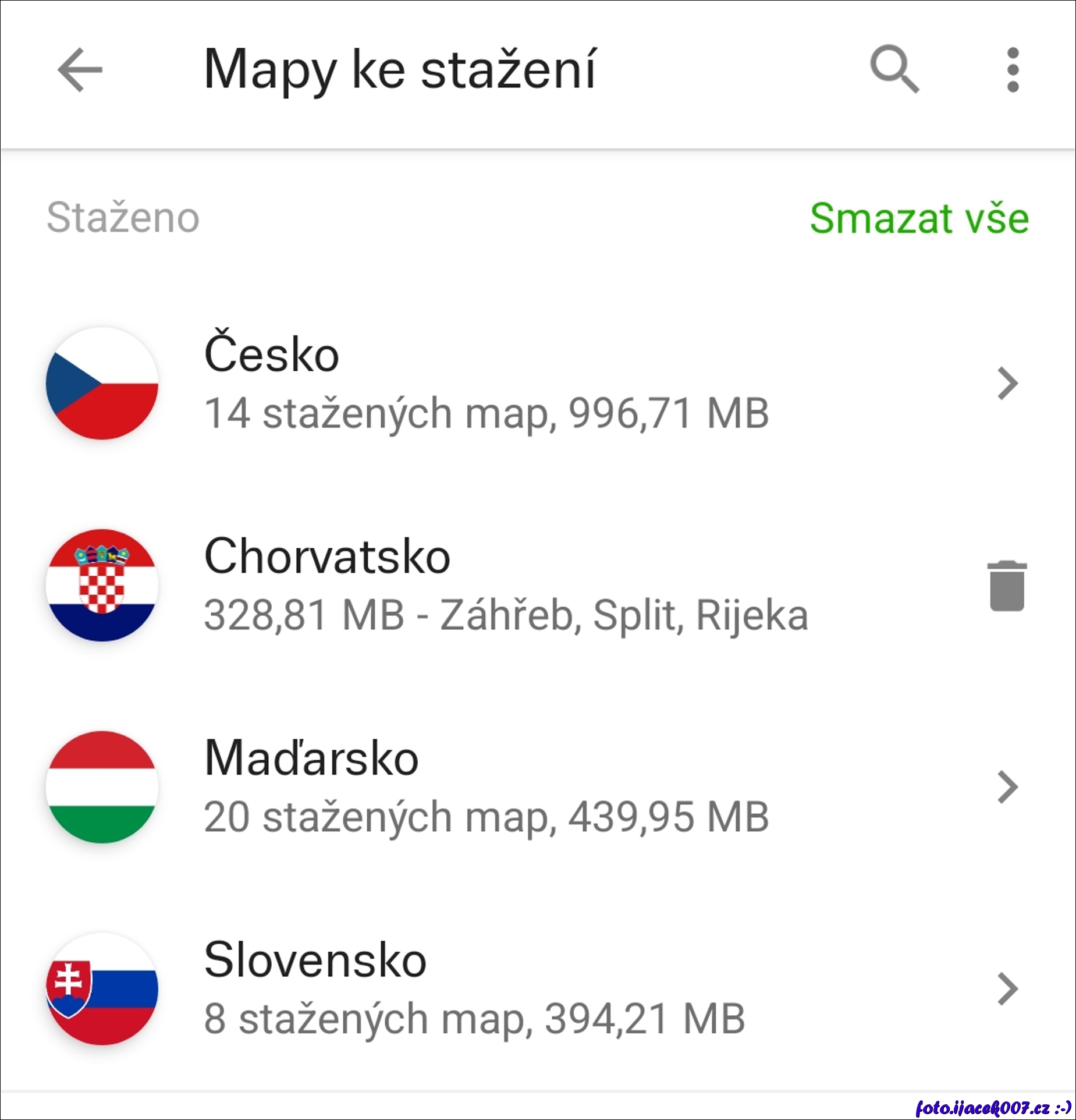 Seznam stažených offline map.