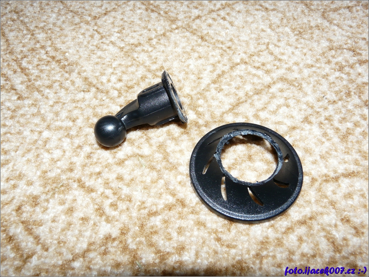 vyřezaný zbytečný plast poškozeného držáku nahravací kamery