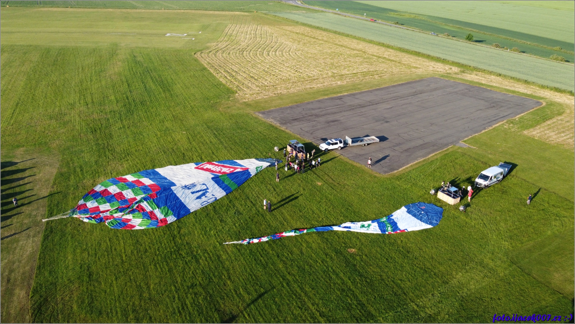 Pohled na přípravu balónu před nafouknutím.